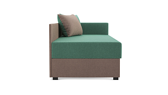 Заказала этот диван в изумрудном цвете. Понравилась его форма – строгая и в то же время необычная. Диван не громоздкий, занимает немного места как в сложенном, так и в разложенном положении. Раскладывается легко. Ткань плотная, качественная и приятная на ощупь.