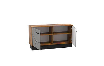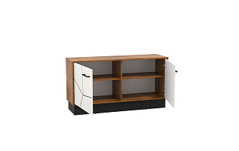 Очень красивая и многофункциональная тумба. Поставили телевизор и по бокам остались места с двух сторон для колонок. В отсеке по середине место занял DVD. У тумбы приятный на ощупь материал. Дизайн элегантный и уникальный. Дверцы легко открываются.