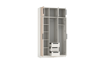 Приобрёл довольно вместительный 4х дверный шкаф Лючия по приемлемой цене. Качеством материала и фурнитуры остался доволен. Я выбрал в большей степени из-за современного дизайна, а жена в свою очередь благодаря зеркал во весь рост. Решил собрать сам, все получилось, правда не всегда было понятно что за чем собирать. Доставили прям в квартиру и довольно быстро.